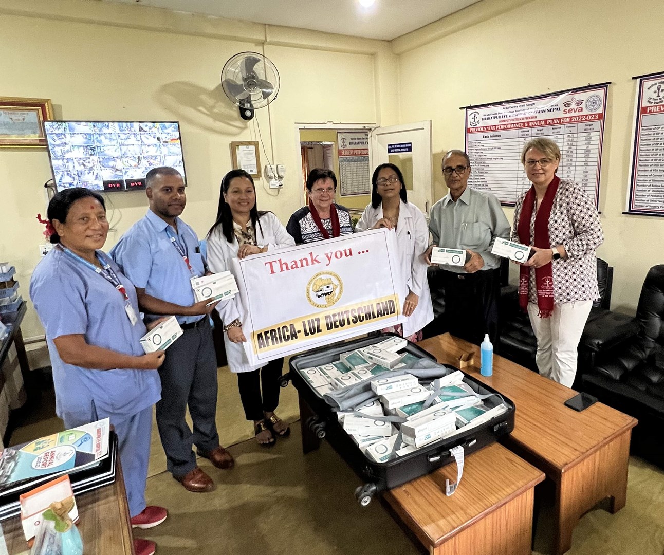 Tags darauf stand ein Diabetestag im Krankenhaus auf dem Programm. Viele Nepalesen nahmen die kostenlosen Untersuchungen in Anspruch. Bei einer beachtlichen Anzahl von ihnen wurde ein Grauer Star diagnostiziert. Africa-Luz hatte von der Firma Rayner 70 intraokulare Linsen erhalten. Diese wurden an die nepalesischen Augenärzte übergeben, mit denen diese dann kostenlos die fast schon erblindeten Nepalesen operierten. Bärbel Birner: „Wieder ein Tropfen auf den heißen Stein. Aber wir hoffen, 2023 wieder helfen zu können.“ Dass man helfen konnte, hatte man zu einem großen Teil wieder einmal der Großzügigkeit der Klaus und Gertrud Conrad Stiftung zu verdanken. Von ihr hatte man eine Spende in Höhe von 10 000 Euro für die Nepal-Aktion erhalten.